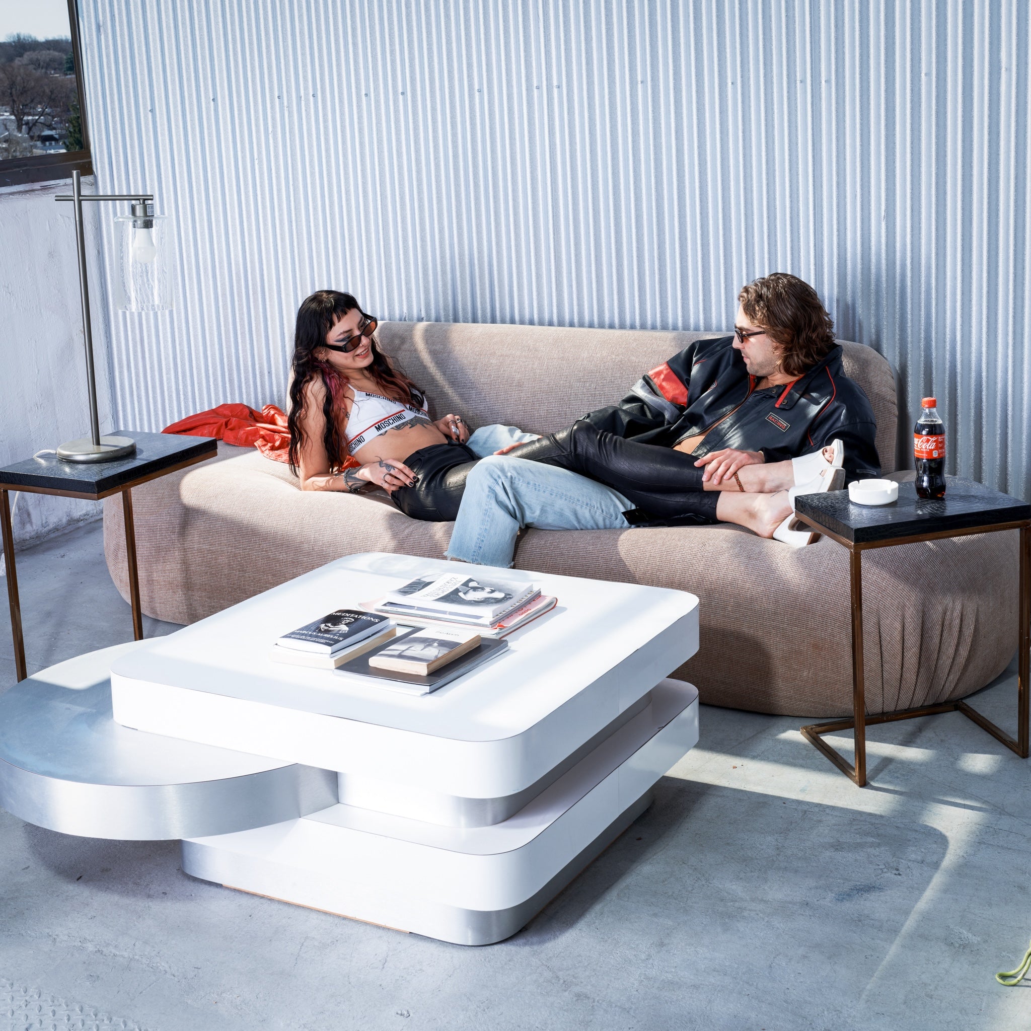 Modern Brushed Aluminum and Lacquer Coffee Table