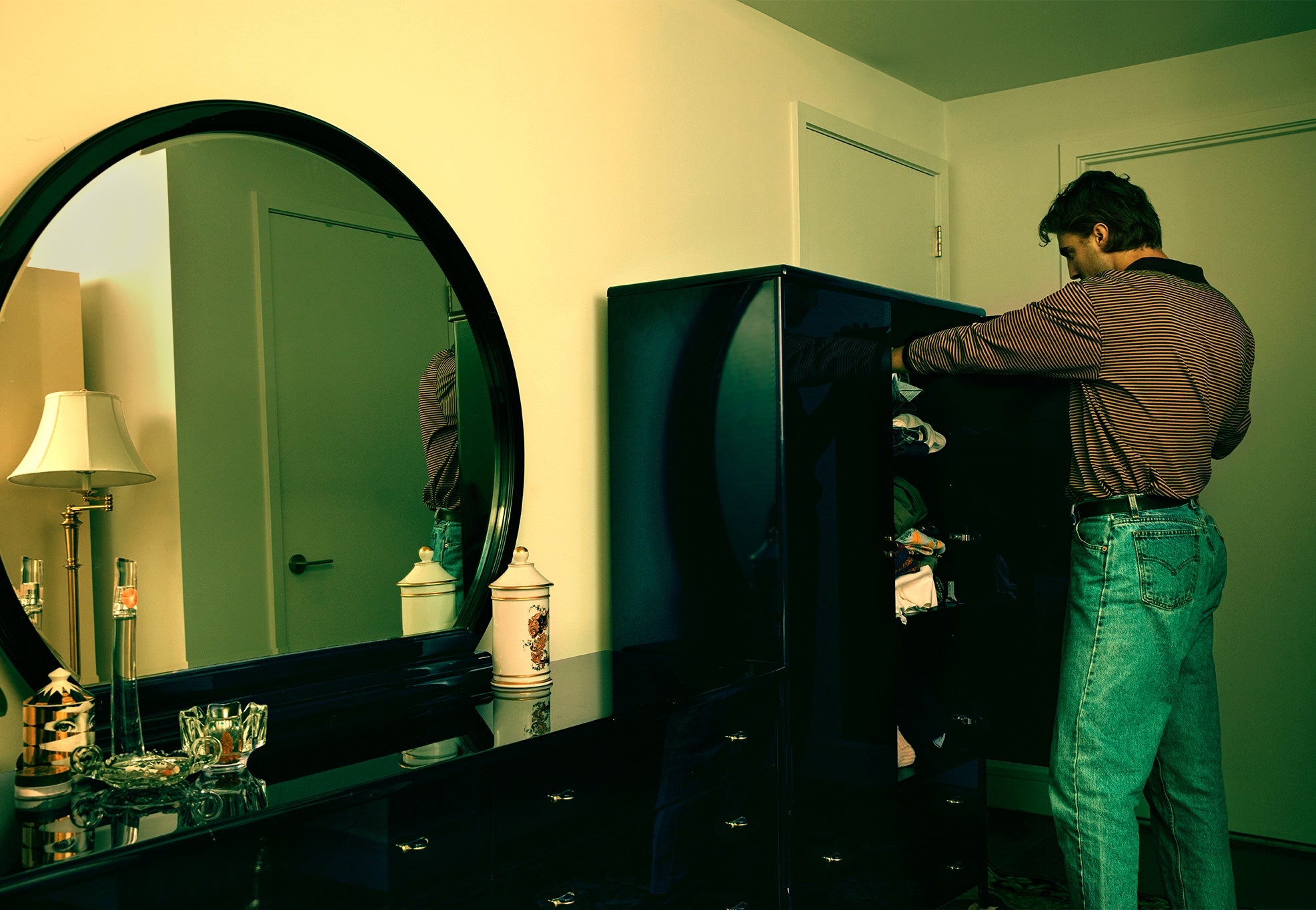 Mid-Century Modern Italian Black Lacquer Dresser with Mirror