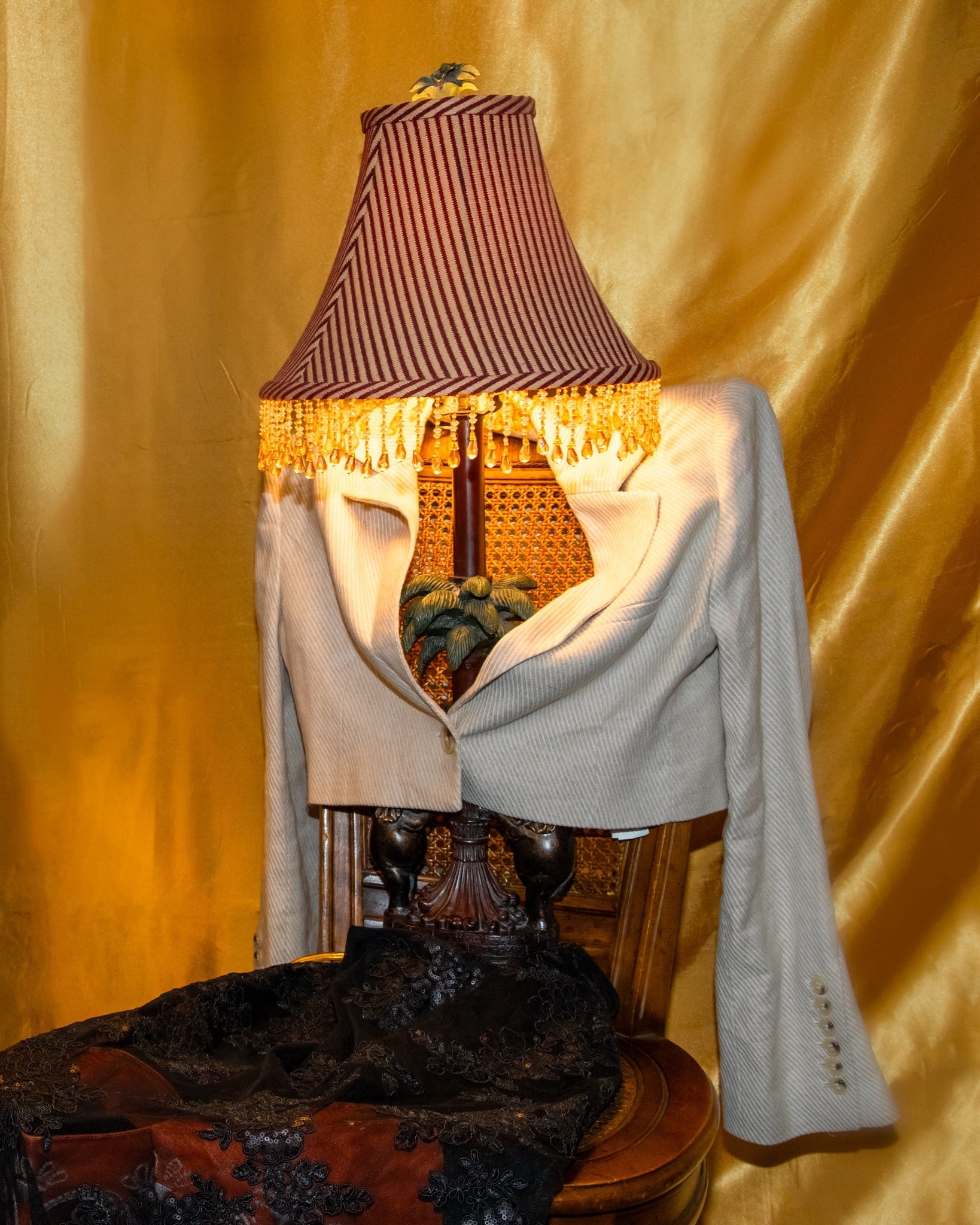 Refurbished Mid-century Modern Striped Vinyl Lamp
