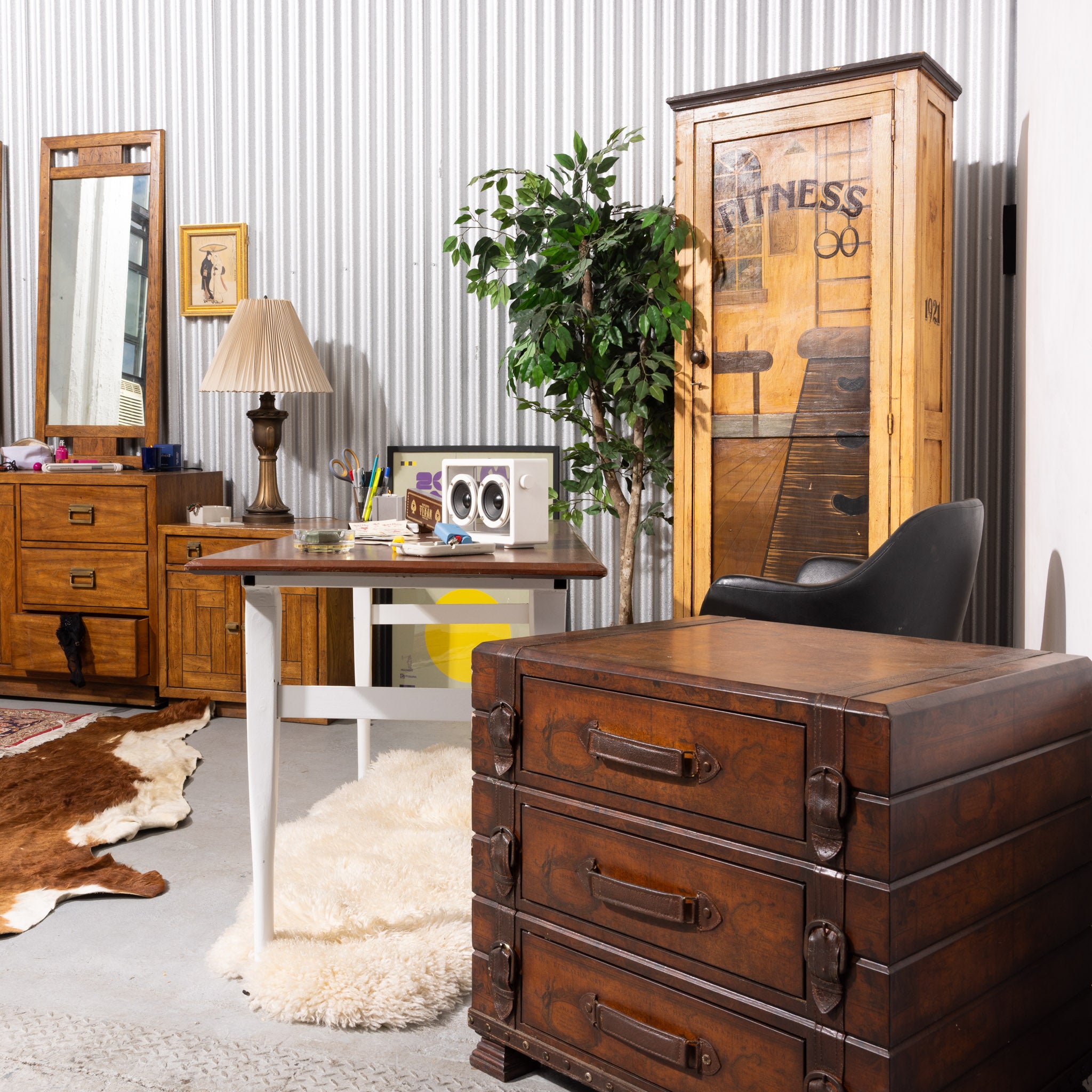 Hand-Painted Solid Wood "Fitness Emporium" Wardrobe