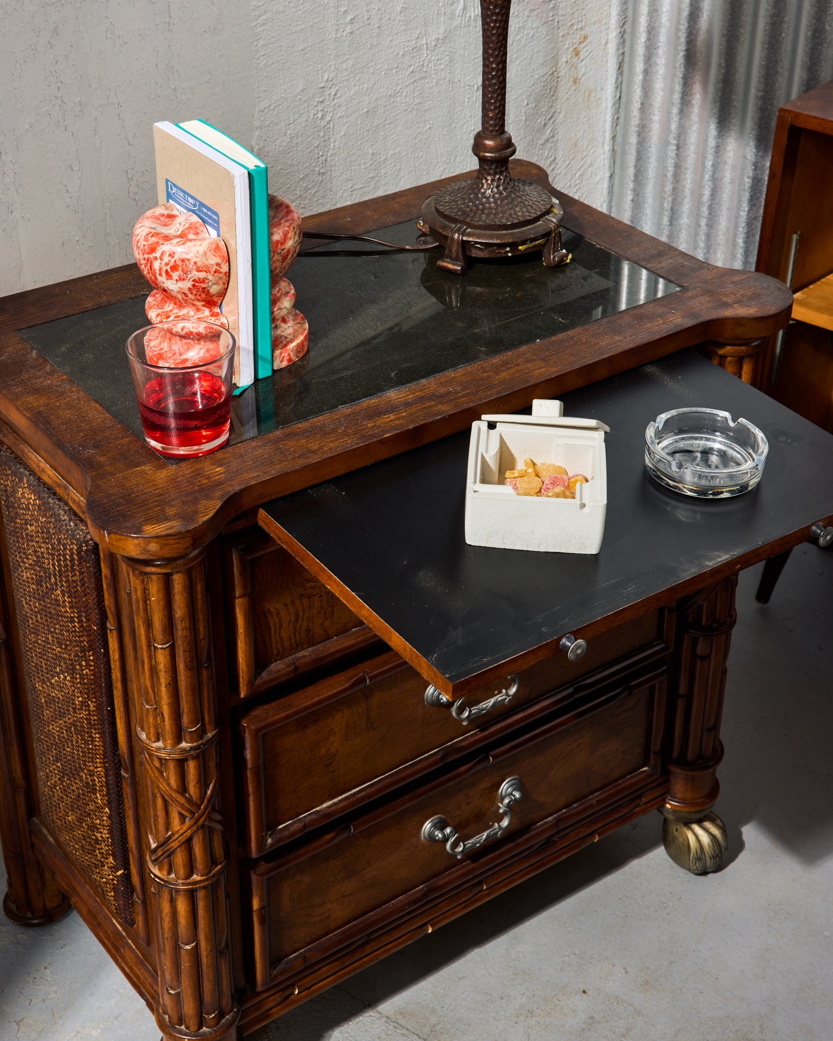 Wooden Nighstand with Granite Top and Pull-Out Writing Tray