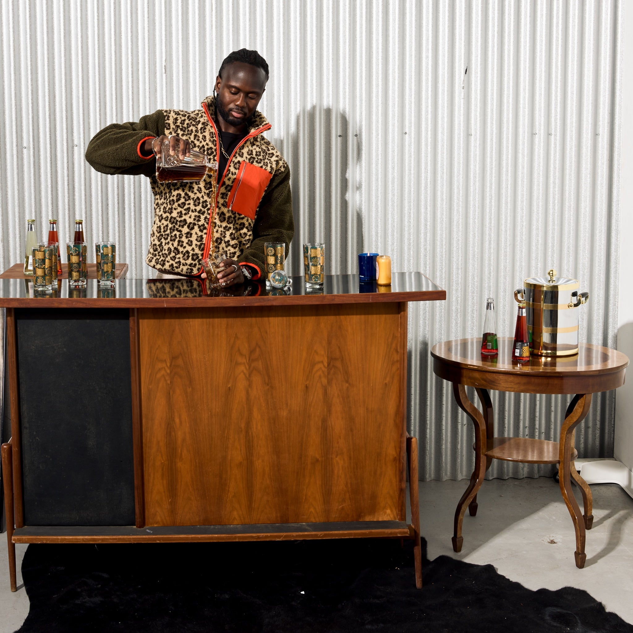 Mid-Century Modern Italian Marquetry Drop-Leaf Bar Cart