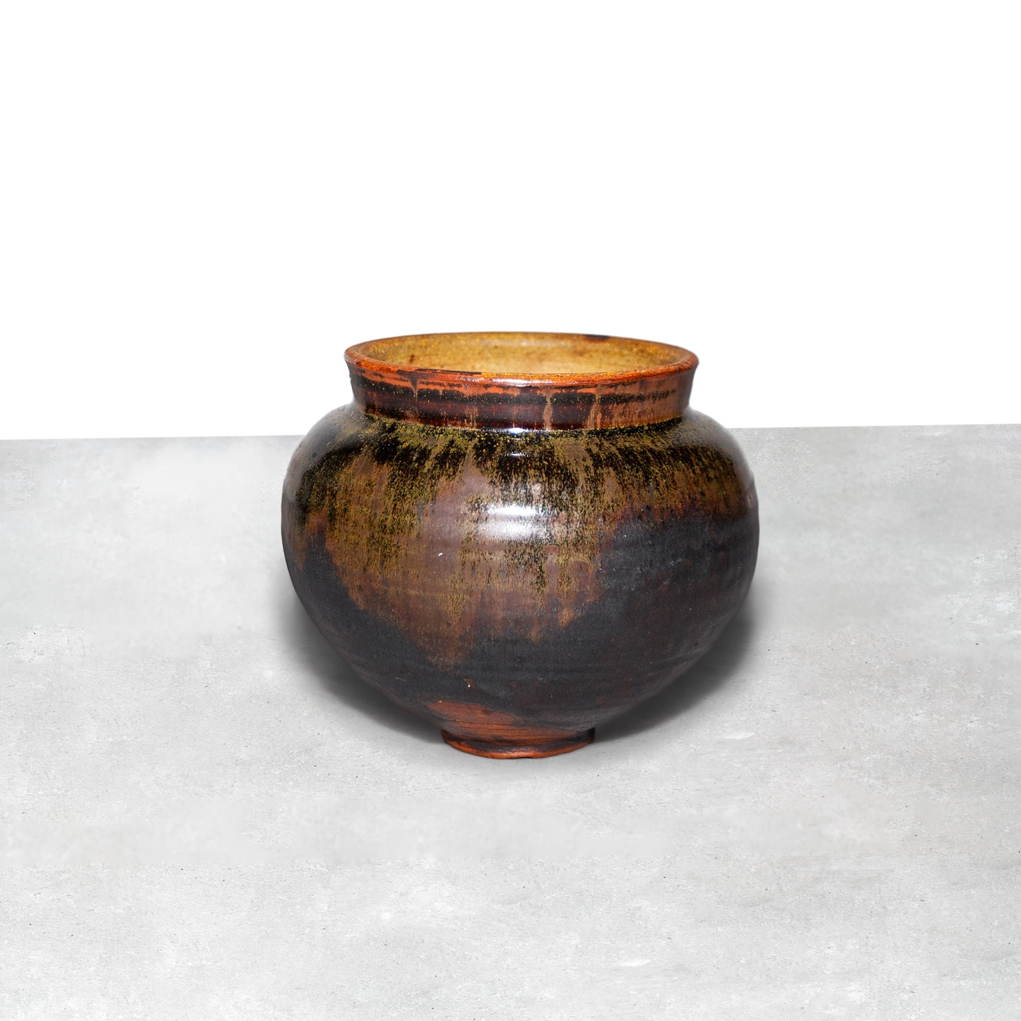 Looking for a plant mom (or dad) to adopt this gorgeous pottery vase. Hand-made and glazed in swirling deep sienna, mocha brown and forest green hues shifting in different lights. Delicious.