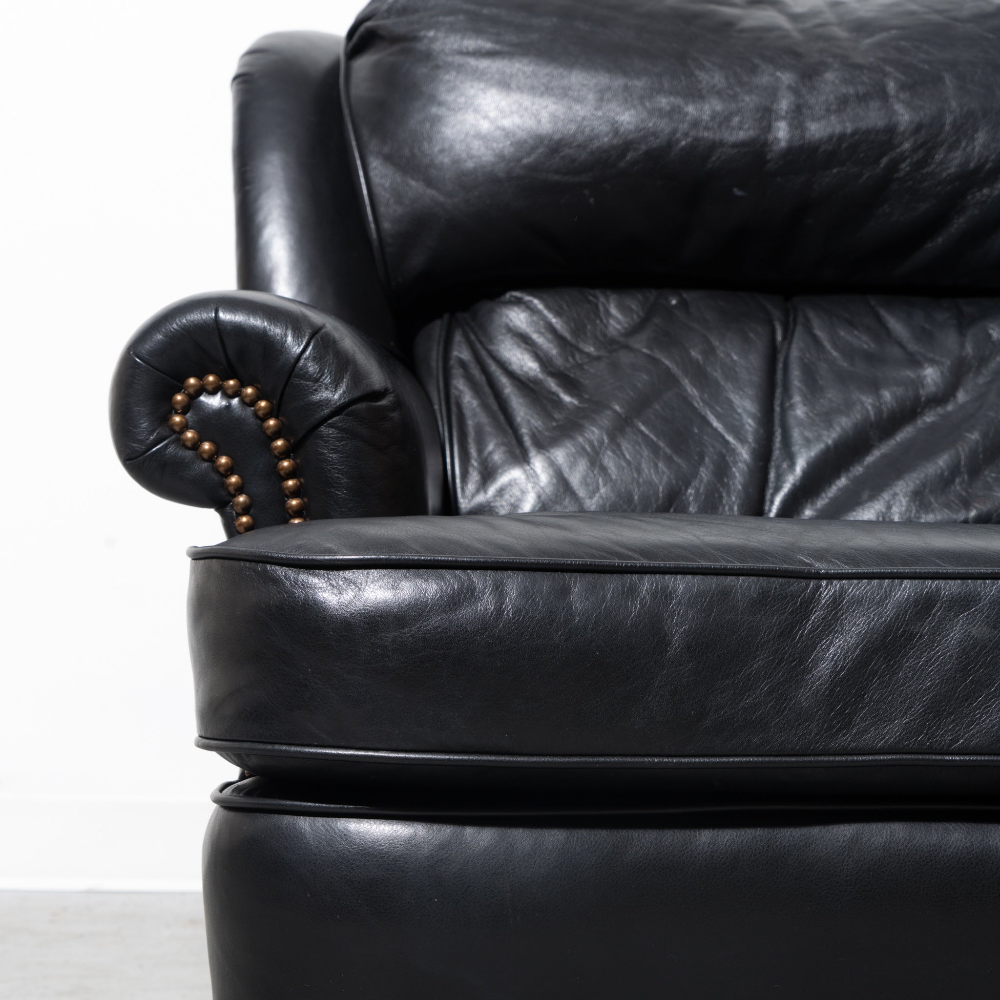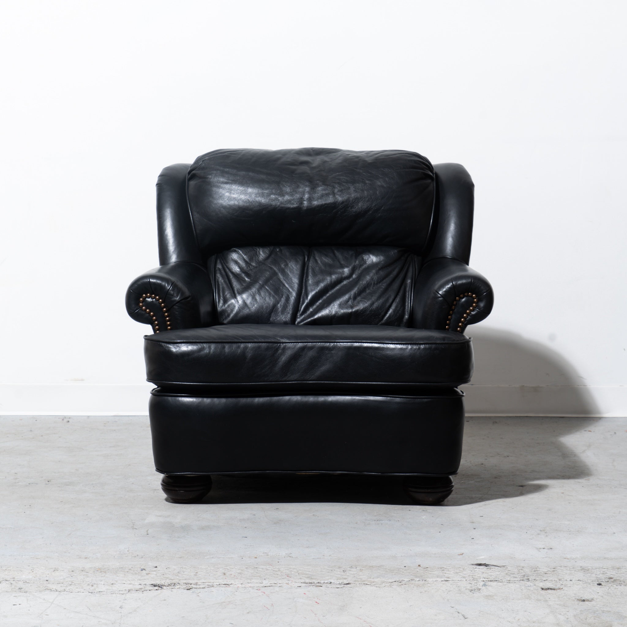 HickoryCraft Black Leather Armchair With Nailhead Accents