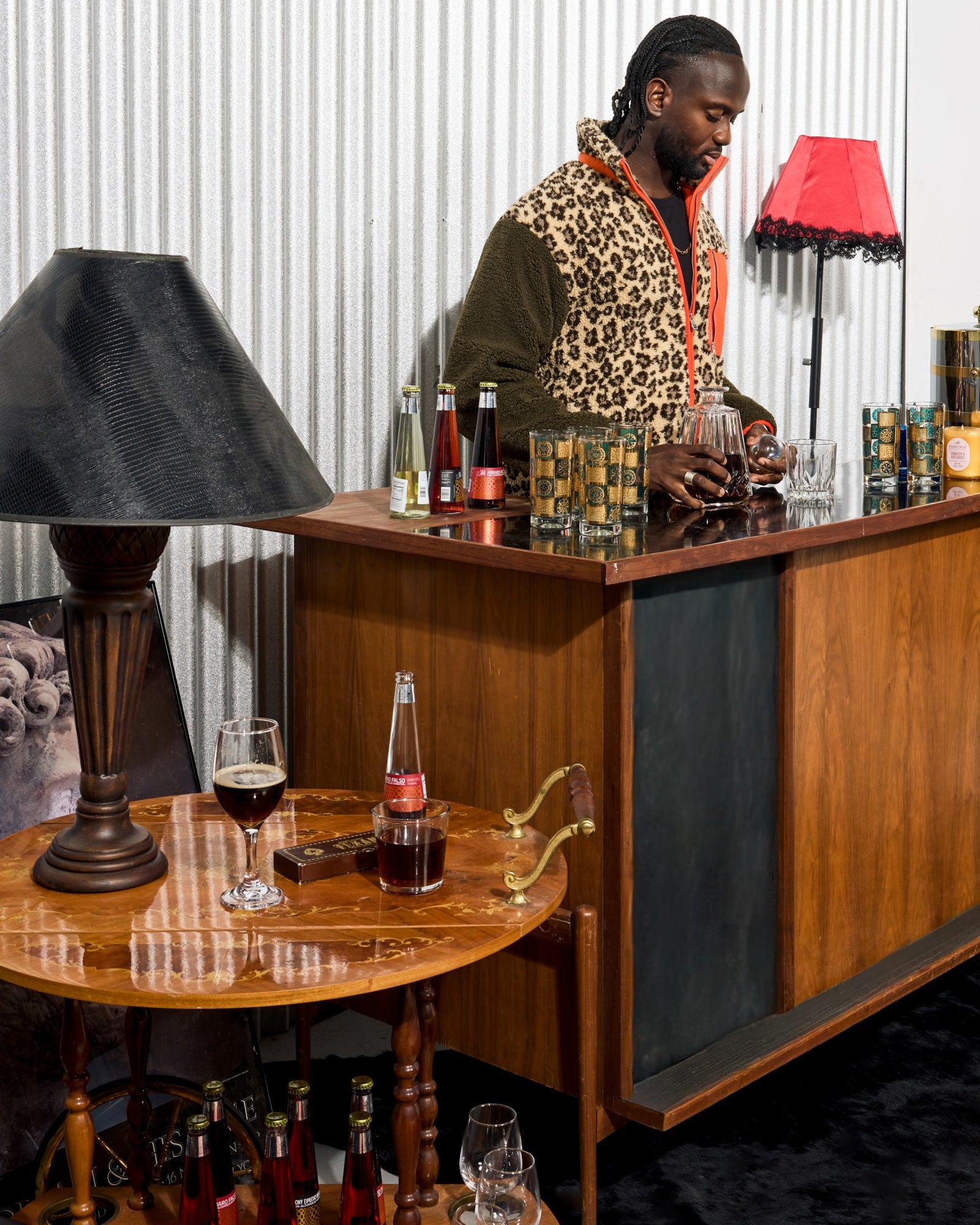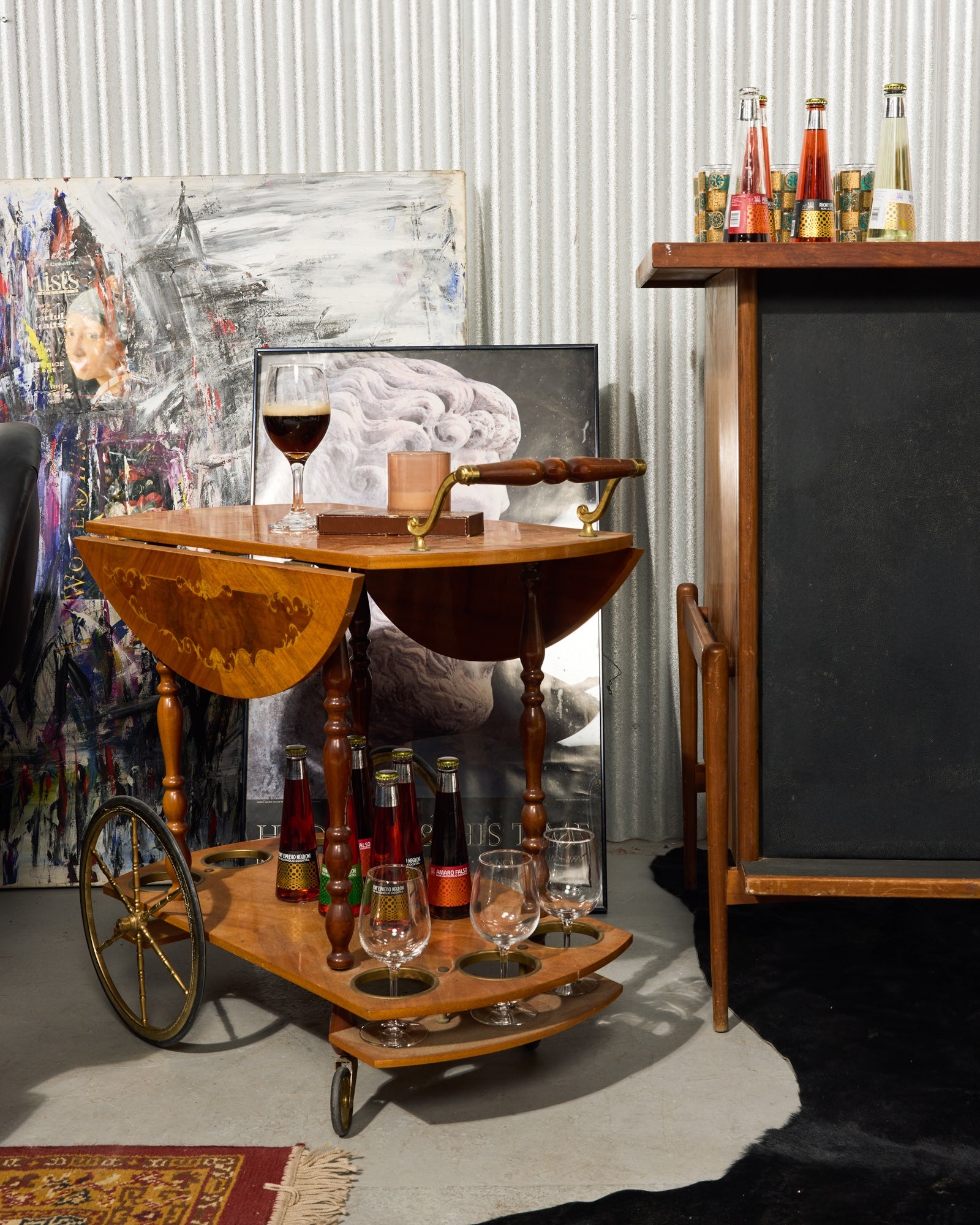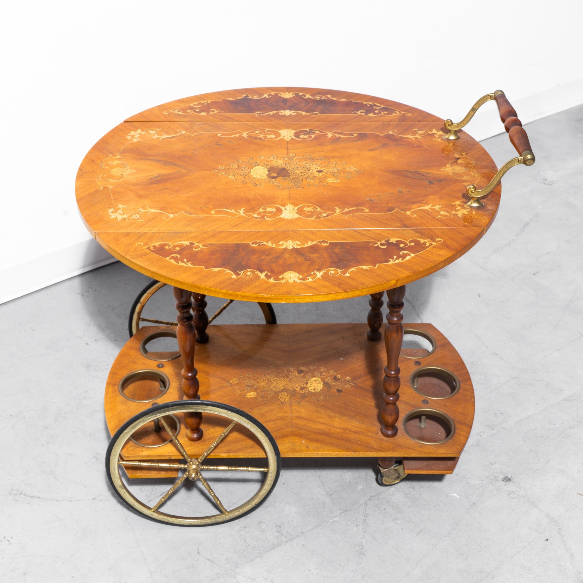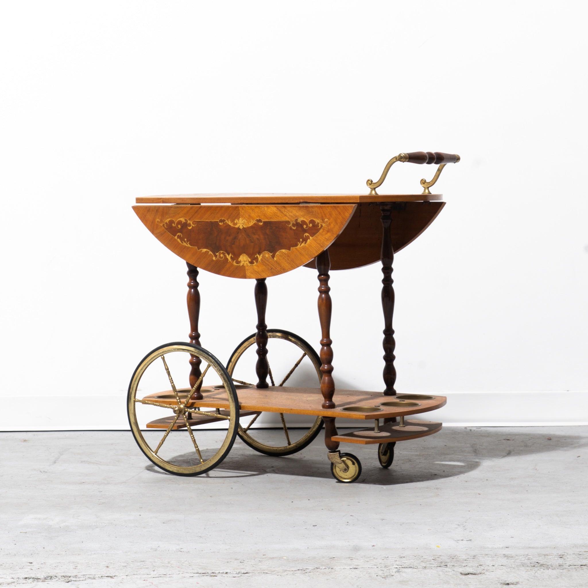 Mid-Century Modern Italian Marquetry Drop-Leaf Bar Cart