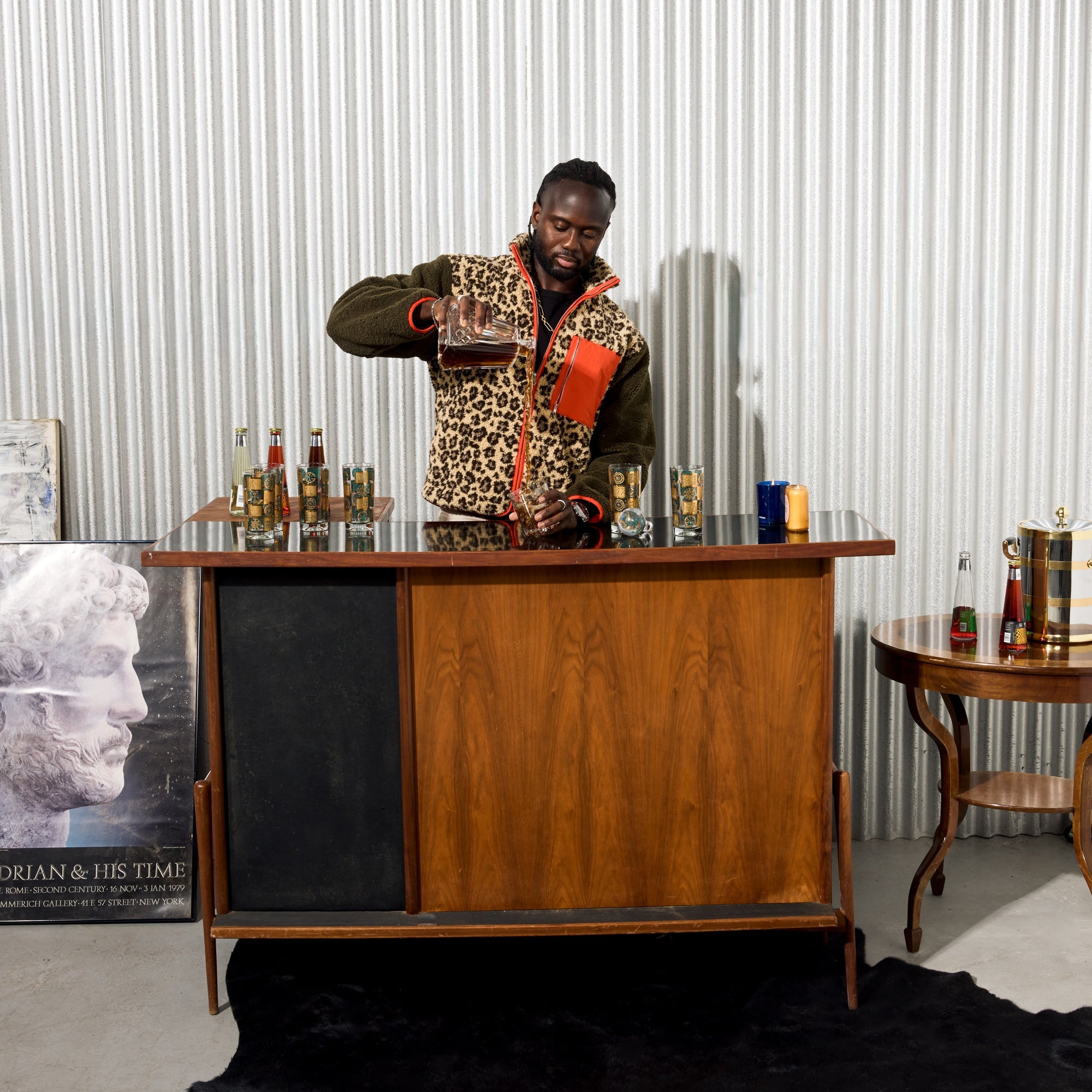 Mid-Century Modern Solid Walnut L-Shaped Bar