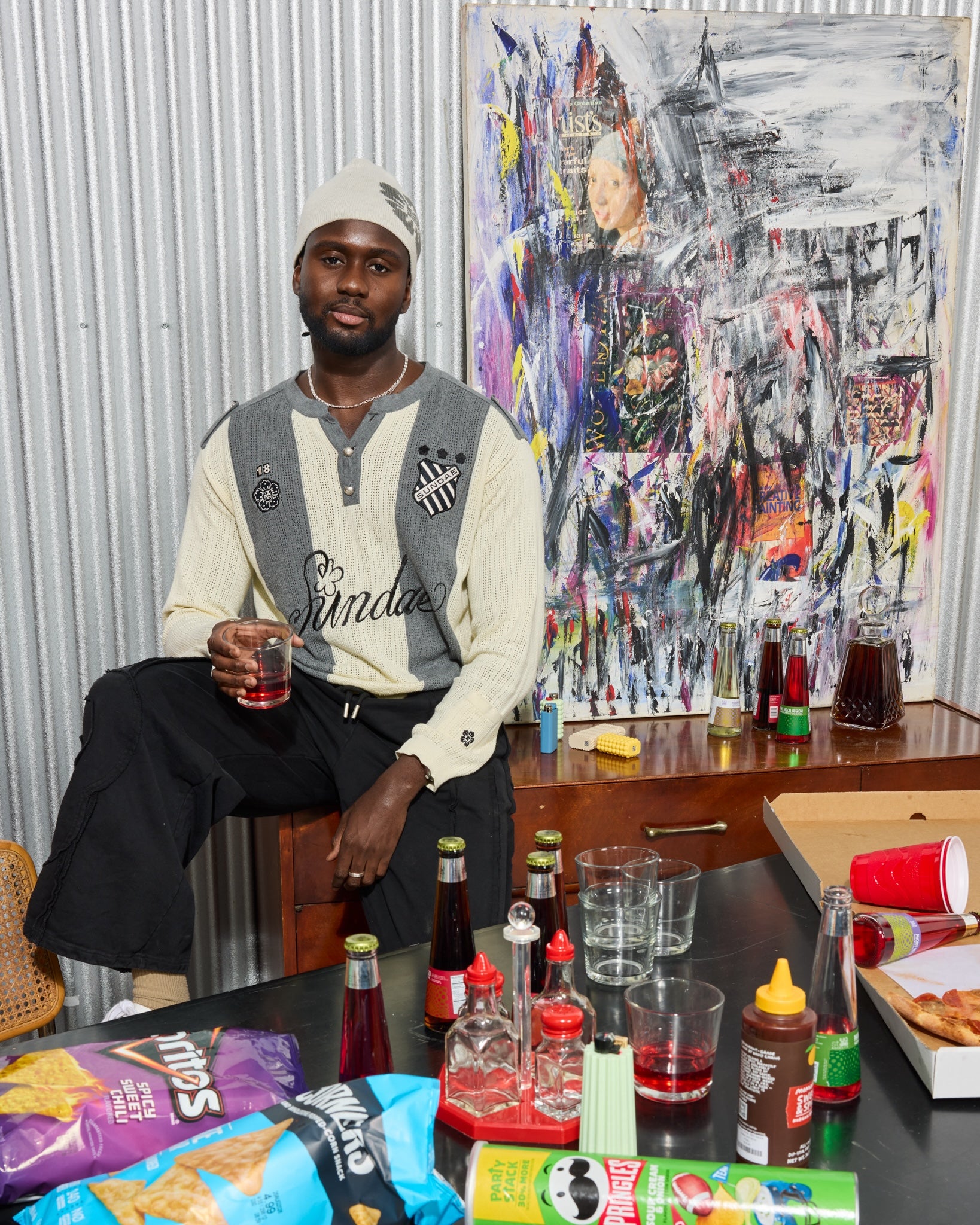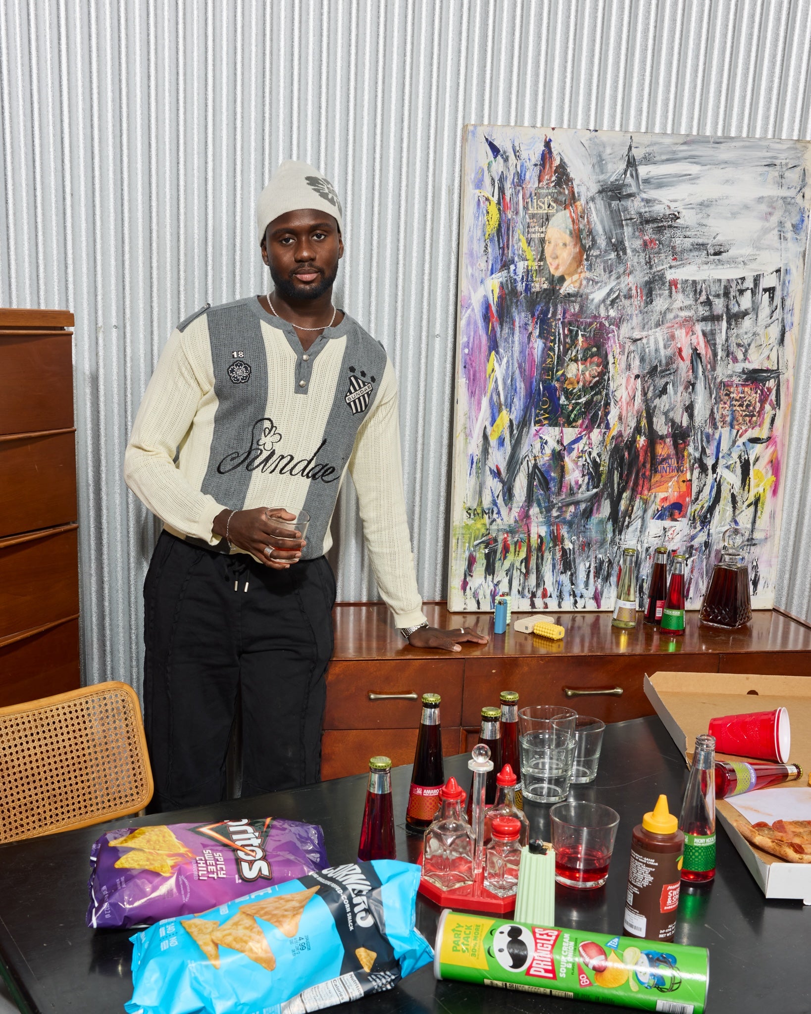 We're all a little chaotic. Original abstract mixed-media college painting on stretched canvas. Signed by Finnish artist Sami Korkiakoski.