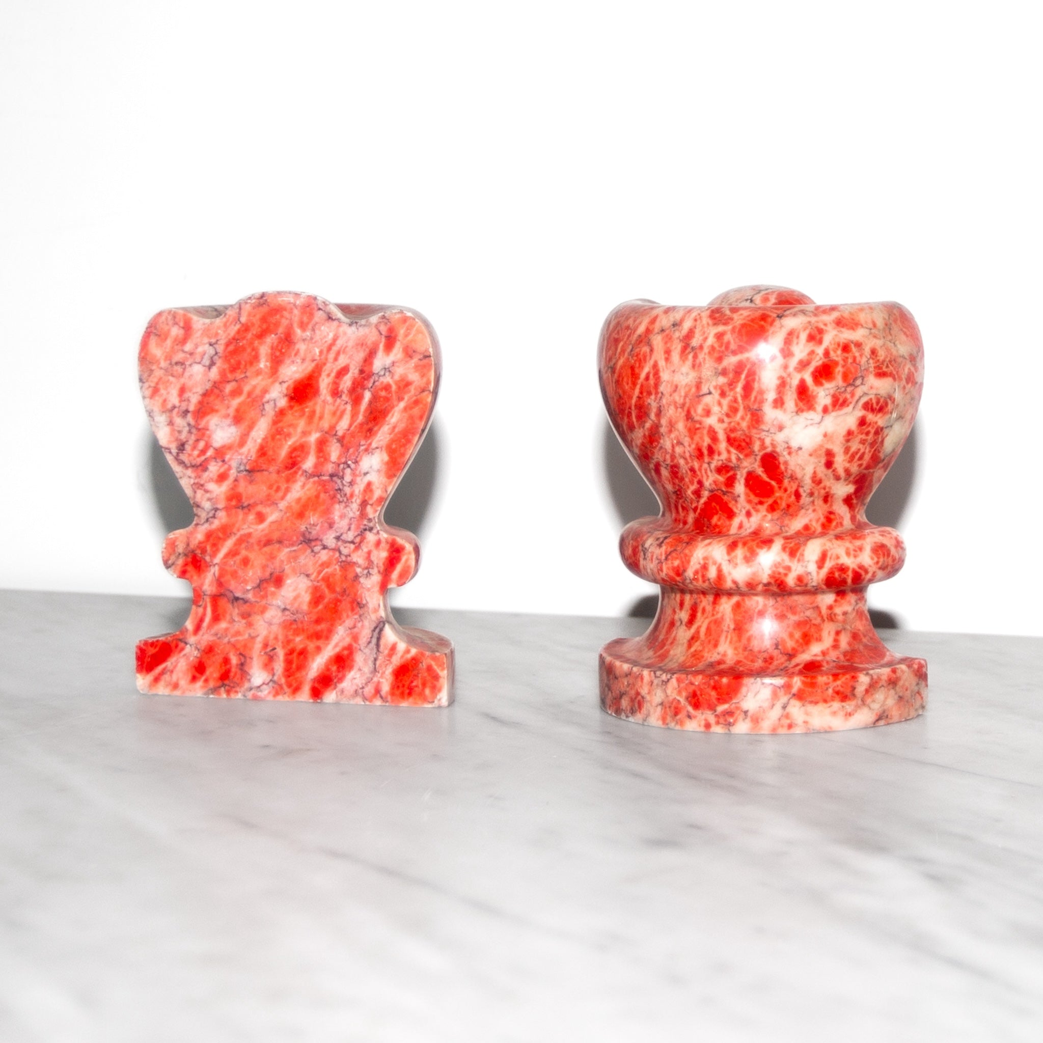 Pair of marble bookend hand-carved in pink-orange Italian alabaster. Sturdy enough to hold your both life and favorite book collection together.