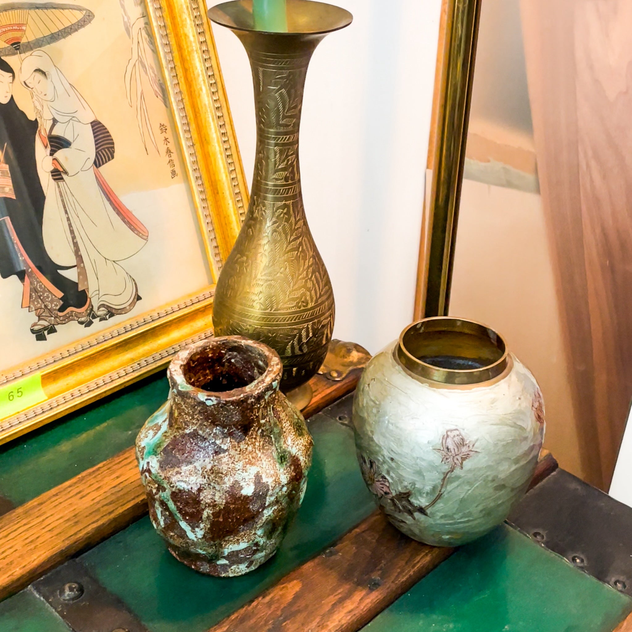 Solid Brass Hand-Painted Floral Vase
